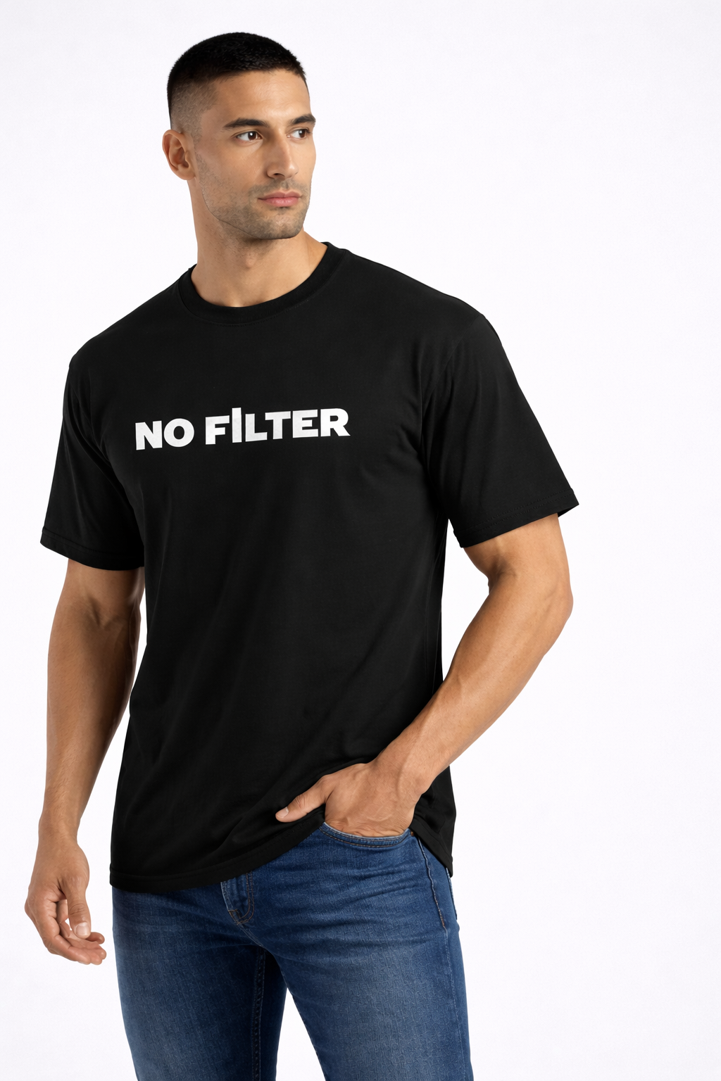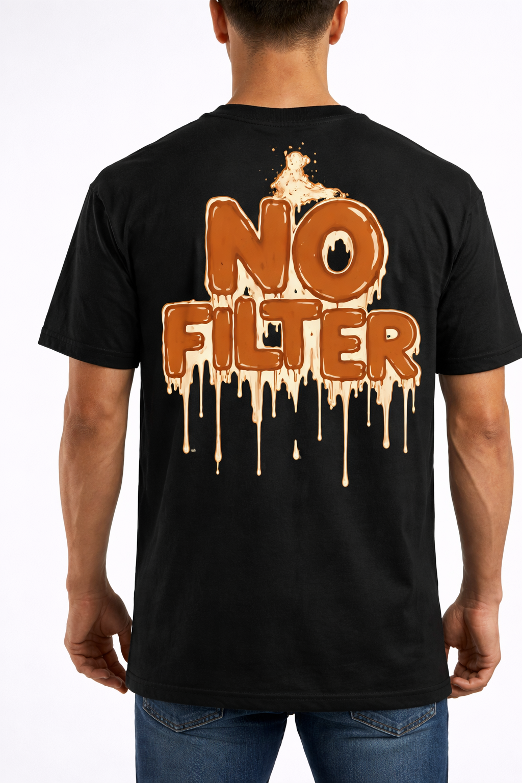 Make a bold statement with our No Filter Drip Graphic Black T-Shirt. Designed for those who love raw, unfiltered style, this premium black t-shirt features a unique dripping typography print on the back that instantly grabs attention. Crafted from soft, breathable fabric, it offers all-day comfort while keeping your streetwear game strong. Perfect for casual outings, parties, or everyday wear, this t-shirt pairs effortlessly with jeans or joggers for a modern, confident look.