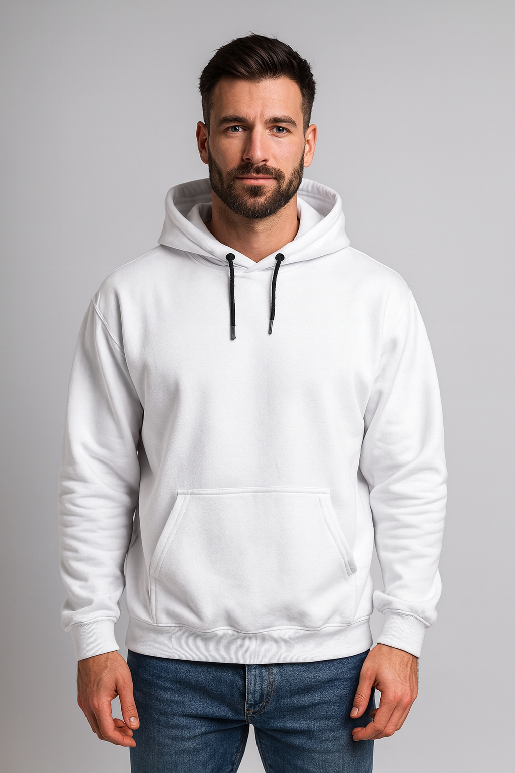 Soft, warm, and stylish premium white hoodie crafted for comfort. Features a cozy hood, front pocket, perfect fit, and everyday versatile design.