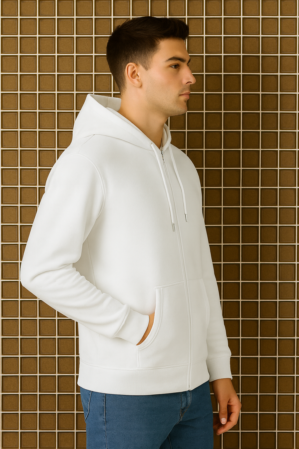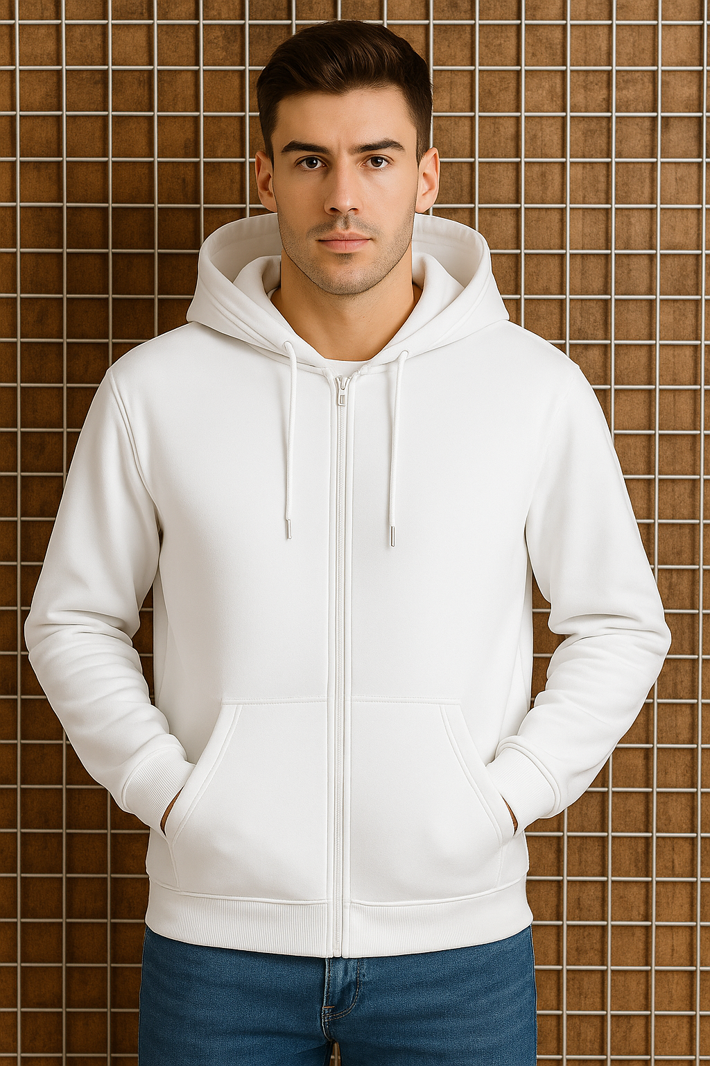 Classic white zip-up hoodie made with ultra-soft fleece for maximum comfort. Features adjustable hood, smooth zipper, and kangaroo pockets—perfect for winter, casual wear, and daily styling.